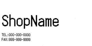 | Input characters | \x1d\x21\x33ShopName\x0a\x1d\x21\x00\x0aTEL:000-000-0000\x0aFAX:999-999-9999\x0a |
